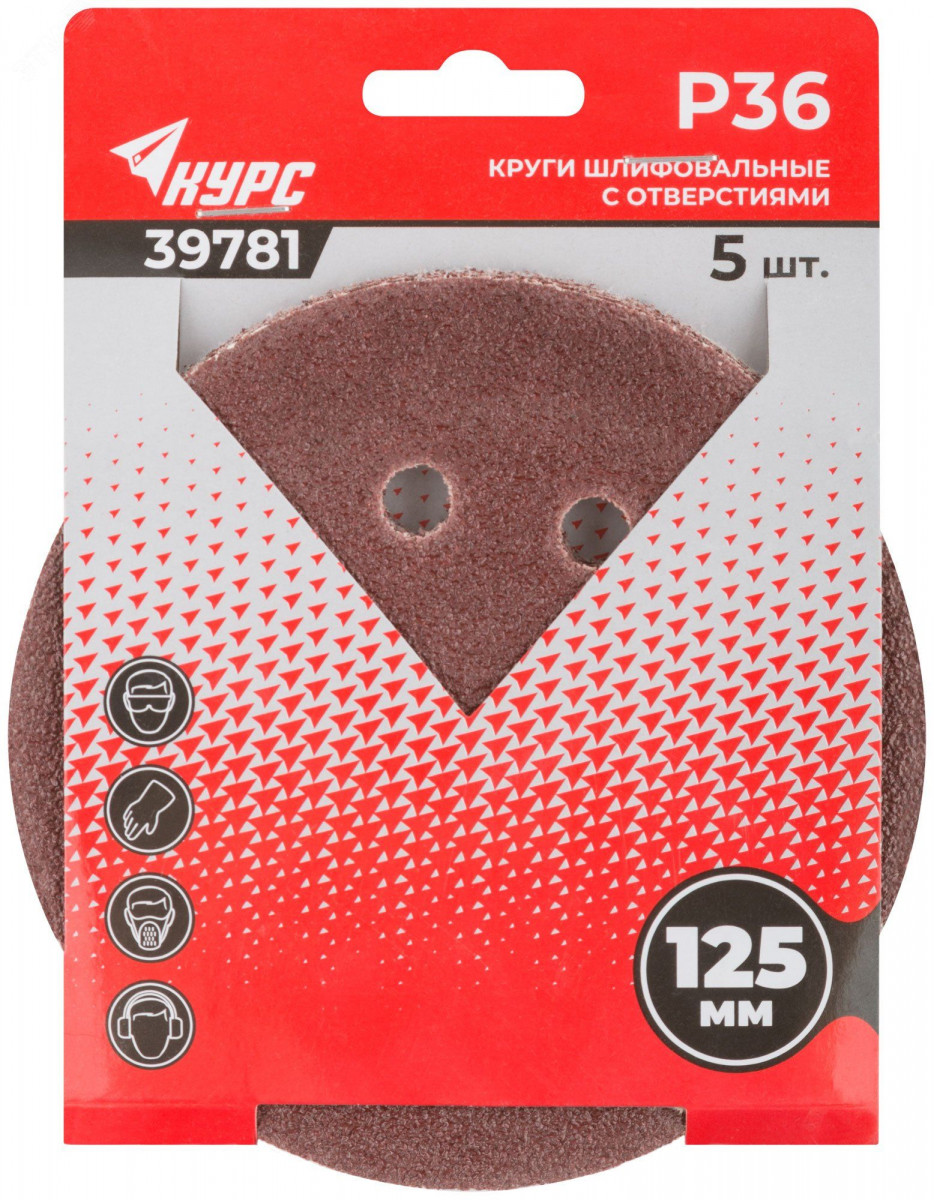 Круги шлифовальные с отверстиями (липучка), алюминий-оксидные, 125 мм, 5 шт Р 36