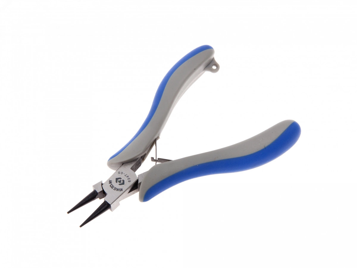 Назначение - Захват и удержание деталей и крепежных соединений, тонких металлических прутков и мелких элементов деталей. Область применения - проведение электромонтажных работ, ремонт электротехники и оборудования, сборка электрических щитов и плат, прочие работы. Круглогубцы. Тип захватных губок - круглые конусные. Тип шарнира - одношарнирный, с возвратной пружиной.