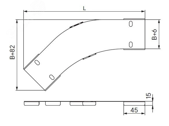 Крышка угла горизонтального 45 градусов обеспечивает защиту кабельной трассы от внешних воздействий. В состав комплектного аксессуара входят детали, необходимые для качественного и надежного монтажа- соединительные пластины и крепежные элементы. Крышка применяется с горизонтальными углами 45 градусов линейки ‘S5 Combitech‘ с шириной основания 400 мм. Толщина металла - 2,0 мм. Крышка представлена в исполнении ‘Горячий цинк‘.