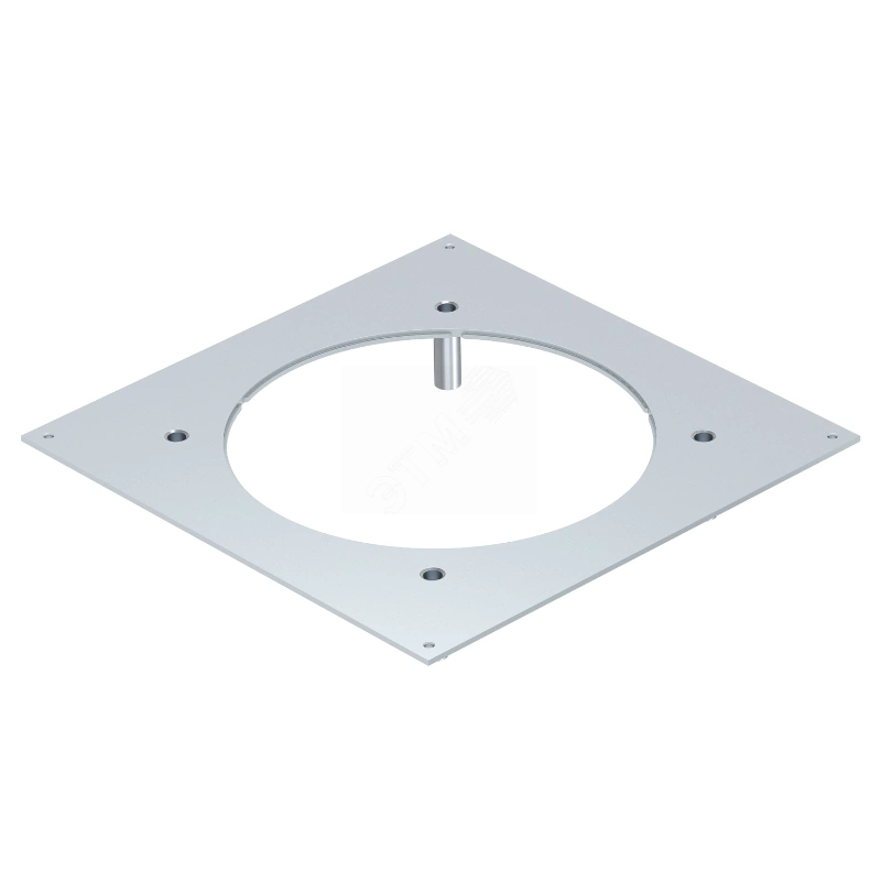 Усиленная крышка для монтажных оснований UZD350-3 с отверстием для монтажа усиленной кассетной рамки круглой формы номинального размера R7. С четырьмя усиленными регулируемыми по высоте опорами, неподвижно закрепленными на монтажной крышке. Нивелировочные винты с контргайкой для фиксации отрегулированной высоты. Монтажное отверстие, заглубленное на 3 мм, для закрытия заглушкой.