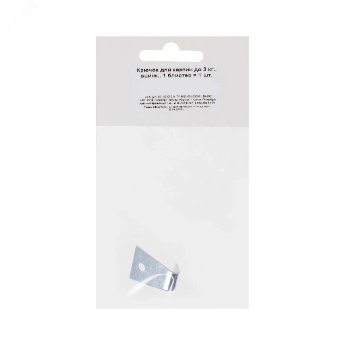 Полное описание: Крючок для картин до 3 кг цинк