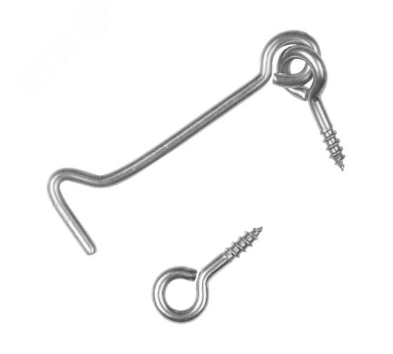 Крюк дверной - это механизм для запирания дверей, калиток, створок. Одна сторона подвижного стержня оснащена крепёжным кольцом, обеспечивающим фиксацию фурнитуры, другая сторона – накидным крюком, который входит в специальное кольцо на дверной коробке, калиточном столбе, створке и обеспечивает запирание.