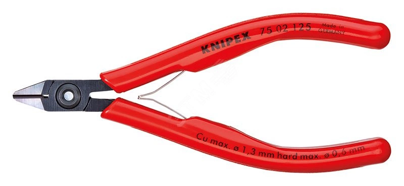 75 02 125 SB Бокорезы для электроники винтовой шарнир для высокой точности и больших нагрузок. для самых тонких монтажных работ, например, в электронике и точной механике. с острыми, отшлифованными лезвиями для мягкой и жесткой проволоки, а также рояльной струны. режущие кромки дополнительно закалены токами высокой частоты до твердости примерно 64 HRC. плоская двуперая пружина с малым трением. с фаской. карта самообслуживания/ блистер. - Параметры резания/проволока средней твёрдости (диаметр) - 1,0mm - Параметры резания/ твёрдая проволока (диаметр) - 0,6mm - Параметры резания/ рояльная струна (диаметр) - 0,4mm - Параметры резания/ мягкая проволока (диаметр) - 0,2?–?1,3mm - Длина губок (B) - 14mm - Толщина губки (шарнир) (D) - 6,5mm - Ширина головки (A) - 10,5mm