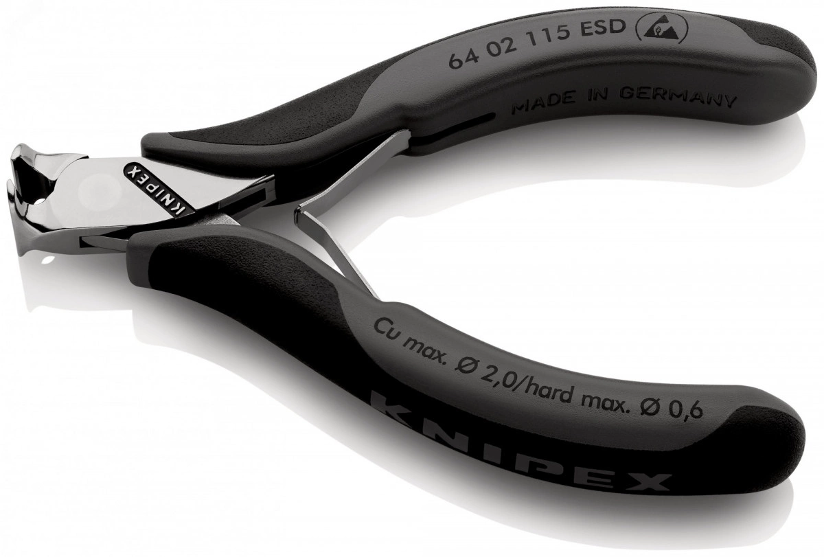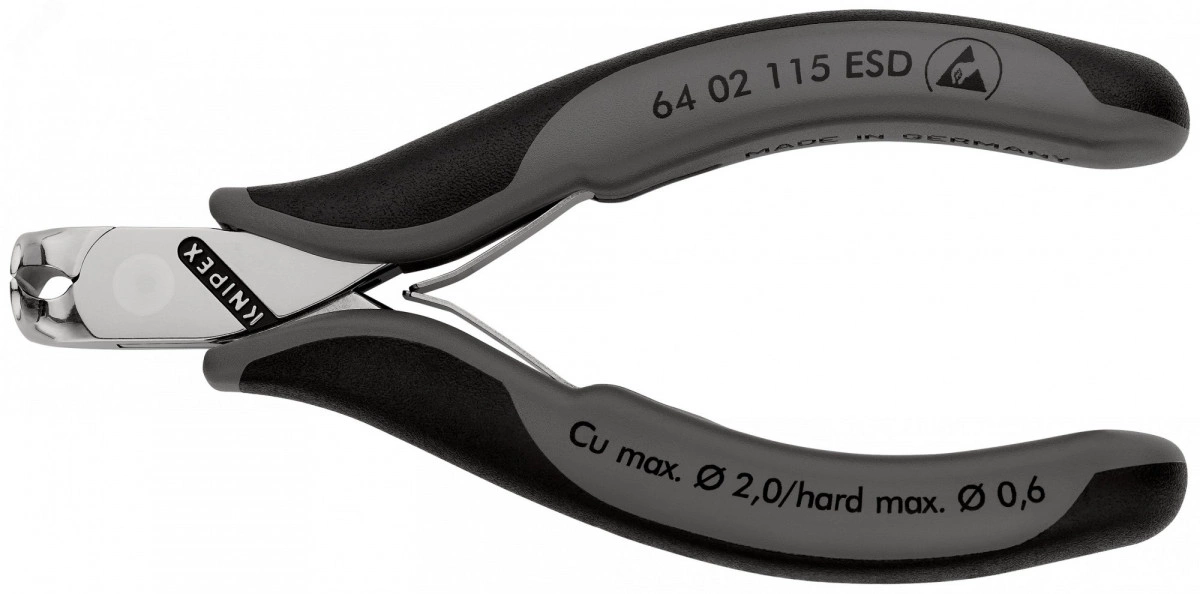 Кусачки торцевые для электроники антистатические кусачки прецизионные для самых тонких работ по резанию, например, в электронике и точной механике. ручки электроотводящие с рассеянием. коробчатый прецизионный шарнир. плоская двуперая пружина с малым трением. финишная отделка - зеркальная полировка в сочетании с тонкой масляной пленкой обеспечивает хорошую защиту от коррозии. Лезвия с дополнительной лазерной закалкой, твёрдость не менее 56 HRC. ручки с двухцветными многокомпонентными чехлами серо-черного цвета. Кусачки торцевые, с маленькой фаской. Параметры резания / мягкая проволока (диаметр) - диаметр 2,0mm. Параметры резания /проволока средней твёрдости (диаметр) диаметр 1,0mm. Параметры резания / твёрдая проволока (диаметр) диаметр 0,6mm. Ширина головки (A) - 11mm. Длина губок (B) - 6mm. Толщина губки (шарнир) (D) - 7,5mm. Длина резака в мм (C) - 16mm