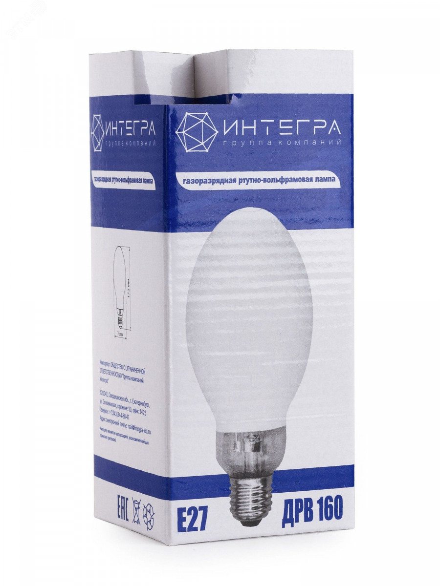 Ртутно-вольфрамовая лампа ИНТЕГРА прямого включения, универсального положения горения, предназначена для использования в открытых и закрытых светильниках для общего уличного, наружного и промышленного освещения, основание колбы резьбовое, исключено отслоение колбы от цоколя.