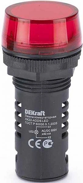 Лампа коммутационная ADDS ЛК-22 d22мм 220В AC/DC красн. LED DEKraft 25119DEK