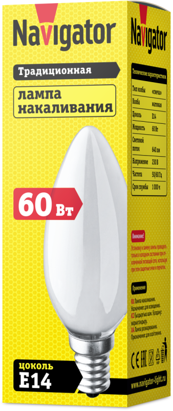 Полное описание: Лампа накаливания 94 309 NI-B-60-230-E14-FR Navigator 94309