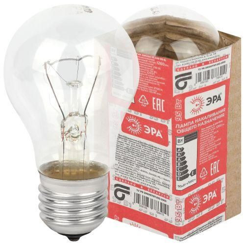 Полное описание: Лампа накаливания A50 95-230-Е27 95Вт грушевидная Е27 230В ЭРА Б0039120