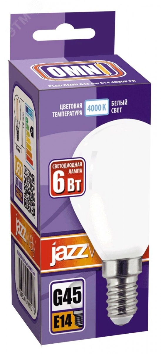 Лампа сетодиодная декоративная LED 6w E14 4000K шар матовый филамент 230/50 Jazzway
