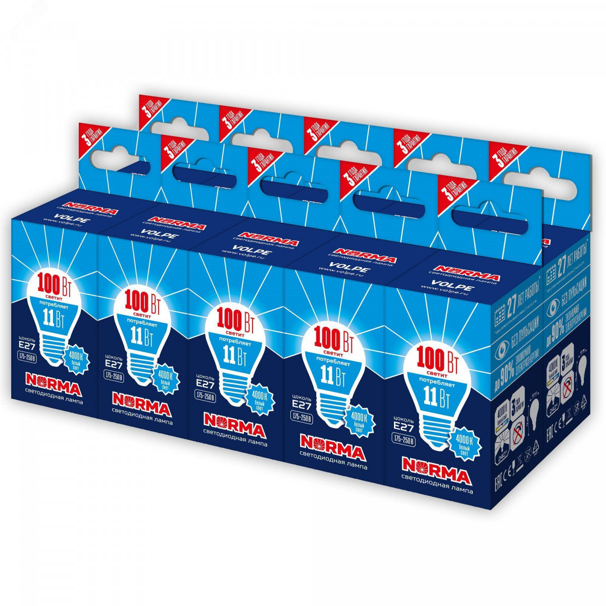 Полное описание: Лампа светодиодная 11 Вт Патрон Е 27 Форма шар матовая Серия Norma Белый свет 4000K Картон ТМ Volpe LED-G45-11W/NW/E27/FR/NR Набор из 10штук