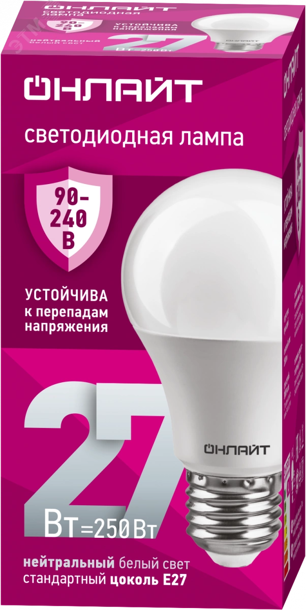 Лампа светодиодная 27вт OLL-A60-27-230-4K-E27 PRO 90-240В ОНЛАЙТ