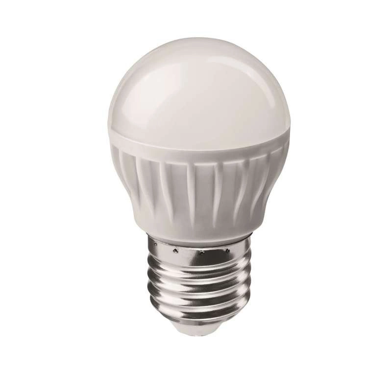 Лампа светодиодная 71 645 OLL-G45-6-230-2.7K-E27 ОНЛАЙТ 4670004716458 – лампа с шаровидной колбой, длиной 73 мм, с цоколем Е27, мощностью 6 Вт. Цветовая температура 2700 К. Дает теплый белый свет.