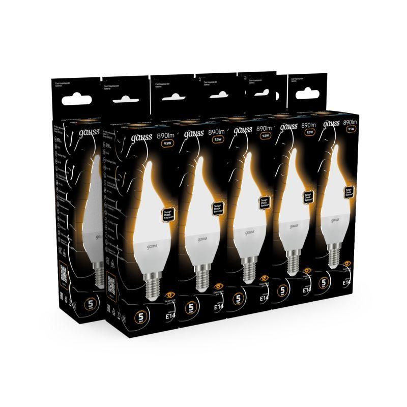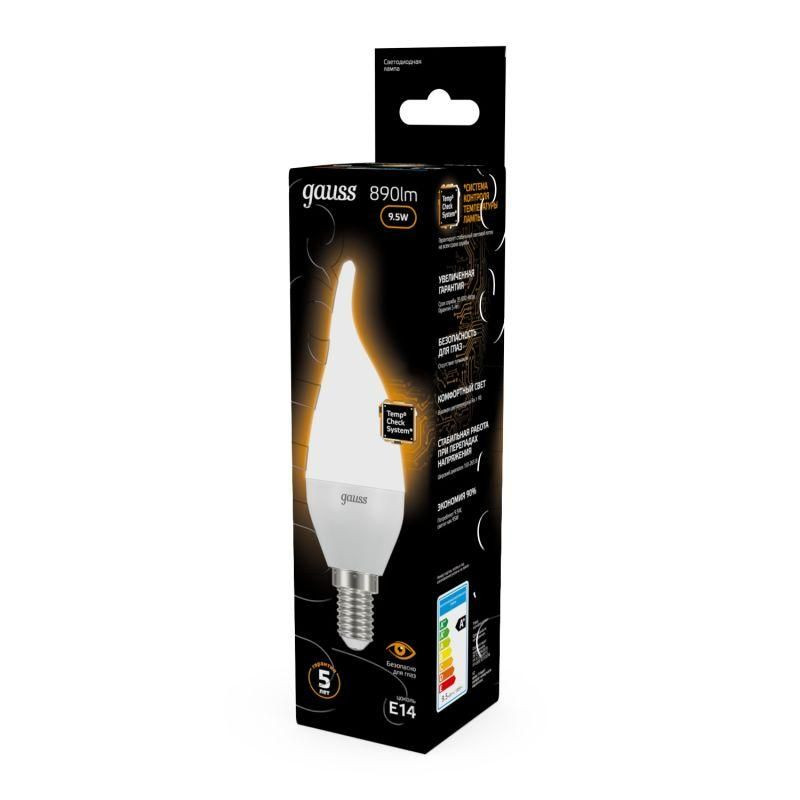 Полное описание: Лампа светодиодная Black 9.5Вт свеча на ветру 3000К тепл. бел. E14 890лм GAUSS 104101110