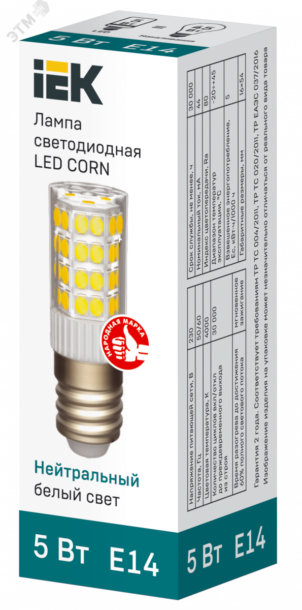 Светодиодная капсульная лампа LED CORN капсула 5Вт 230В 4000К керамика E14 IEK является заменой капсульных галогенных ламп соответствующего цоколя и используются как для основного освещения жилых и коммерческих помещений, так и для точечной и акцентной подсветки.