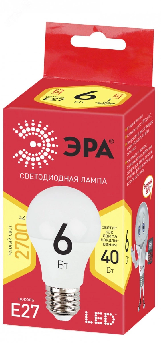 Бытовая светодиодная лампа ЭРА Серии Бюджет, создаёт яркое ровное освещение и экономит до 90% электроэнергии по сравнению с лампой накаливания с аналогичным световым потоком. Светит теплым светом с жёлтым оттенком - такая цветовая температура эффективна для отдыха и уютной атмосферы в доме. Используется в потолочных, настенных, настольных светильниках, в люстрах и бра. Мгновенно включается и не нагревается.