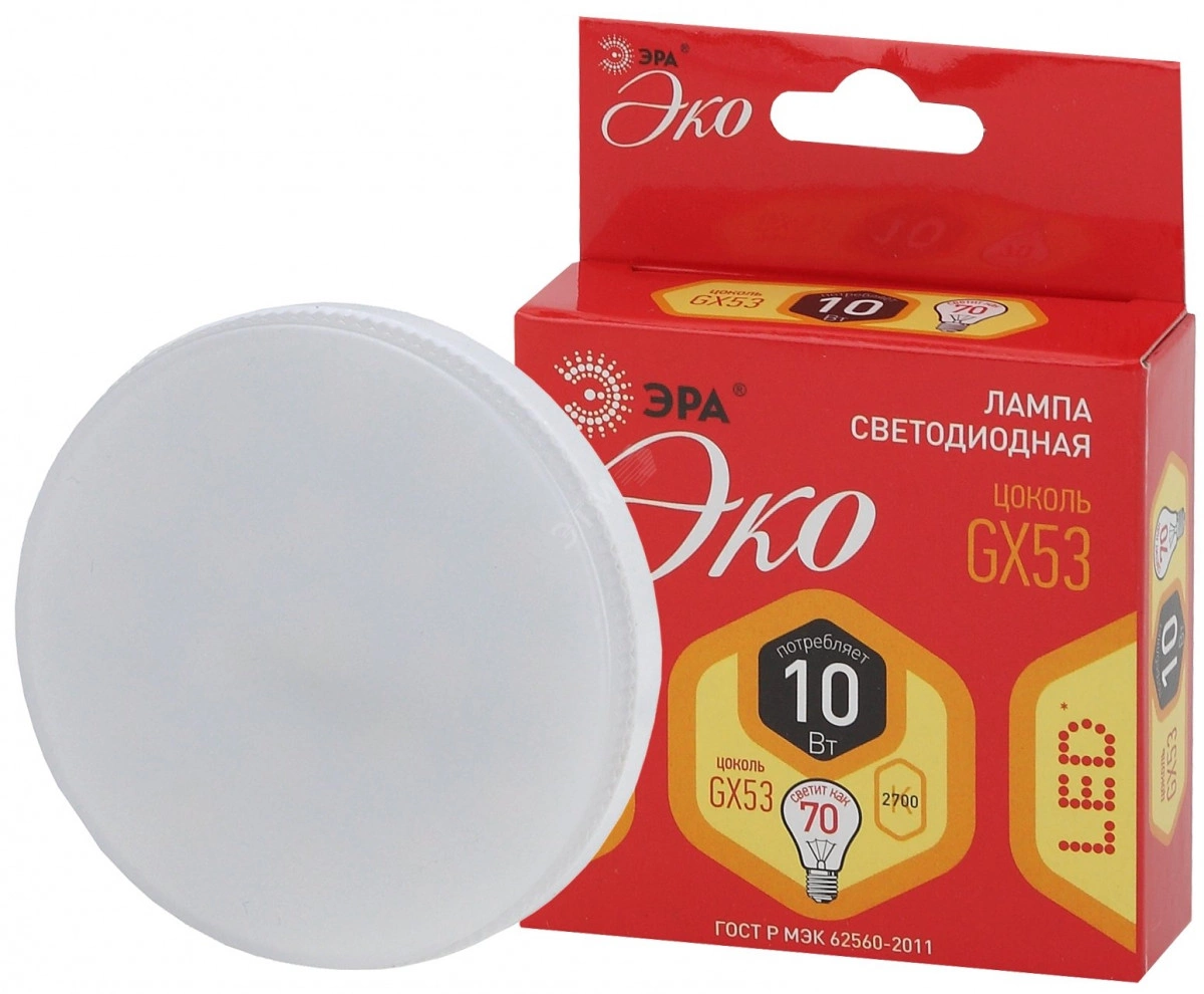 Лампа светодиодная ECO LED GX-10W-827-GX53 (диод, таблетка, 10Вт, тепл, GX53 (10/100/4800) ЭРА
