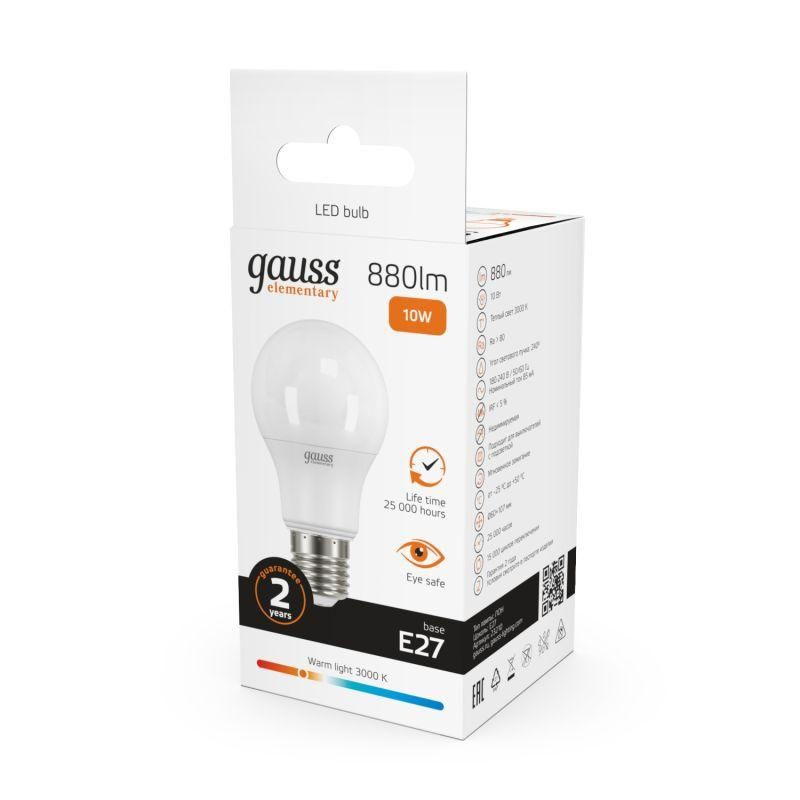 Полное описание: Лампа светодиодная Elementary 10Вт A60 грушевидная 3000К тепл. бел. E27 880лм GAUSS 23210