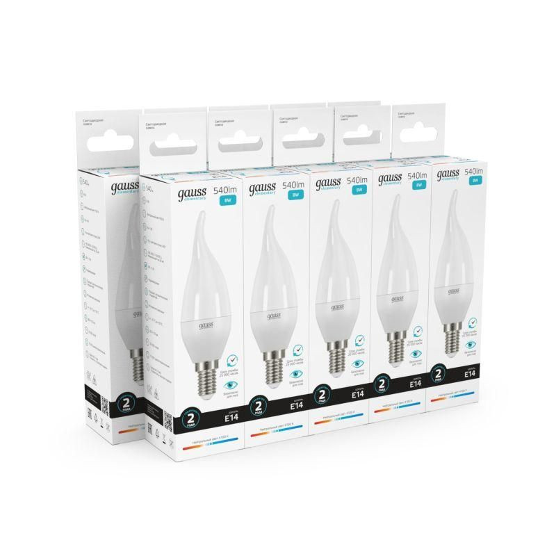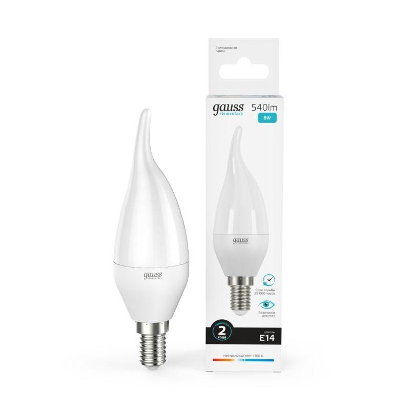 Лампа светодиодная Elementary 8Вт свеча на ветру 4100К нейтр. бел. E14 540лм GAUSS 34128