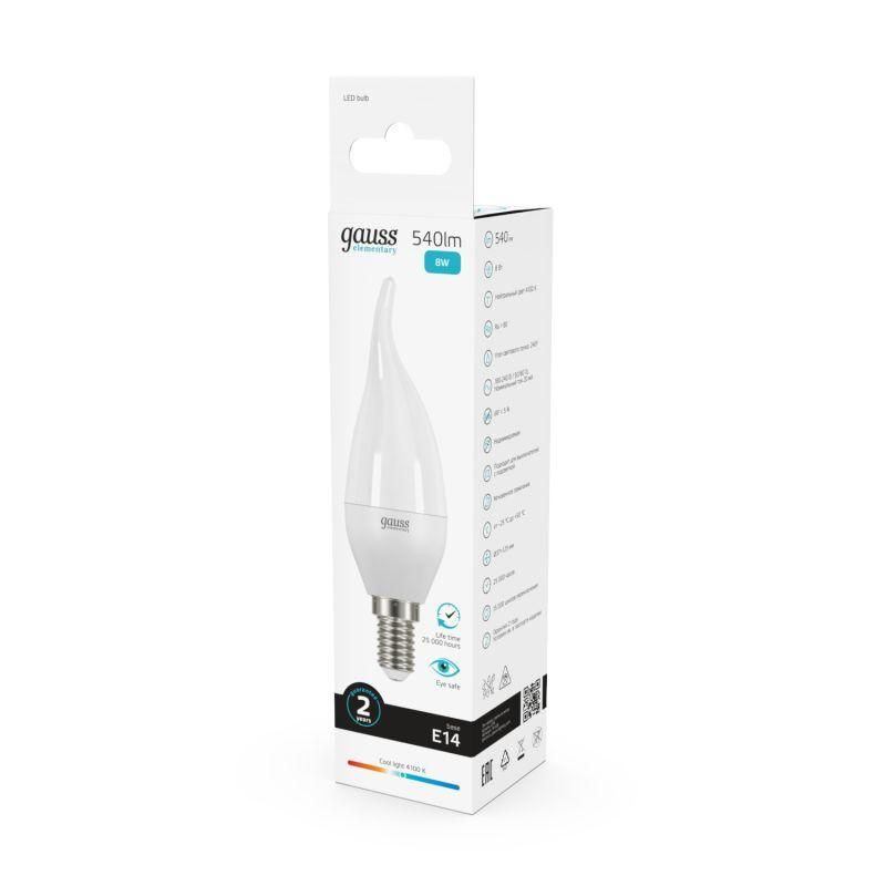 Полное описание: Лампа светодиодная Elementary 8Вт свеча на ветру 4100К нейтр. бел. E14 540лм GAUSS 34128
