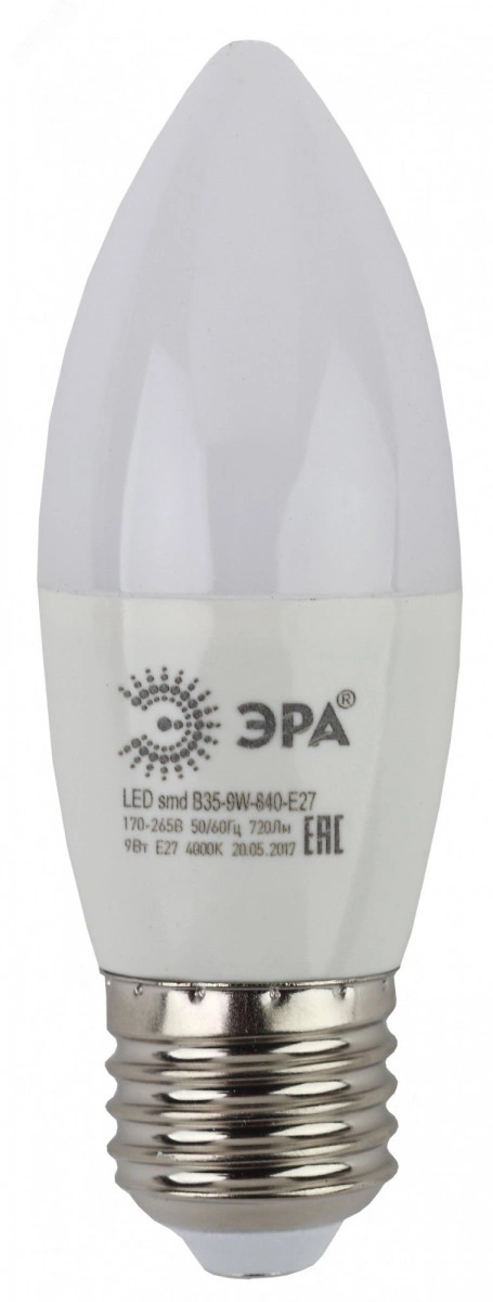 Лампа светодиодная Эра LED B35-9W-840-E27 (диод, свеча, 9Вт, нейтр, E27)