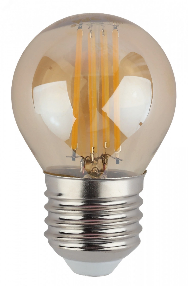 Лампа светодиодная F-LED P45-7W-827-E27 gold (филамент, шар золот, 7Вт, тепл, E27) (10/100/3600) ЭРА