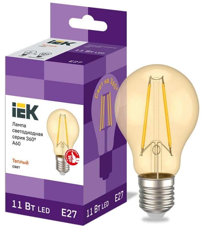 Полное описание: Лампа светодиодная филаментная 360° 11Вт A60 шар 2700К E27 230В золото IEK LLF-A60-11-230-30-E27-CLG