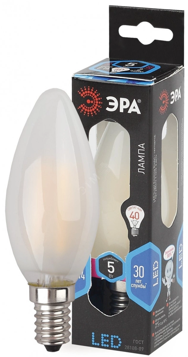 Лампа светодиодная филаментная F-LED B35-5W-840-E14 frost (филамент, свеча мат., 5Вт, нейтр, E14 (10/100/2800) ЭРА