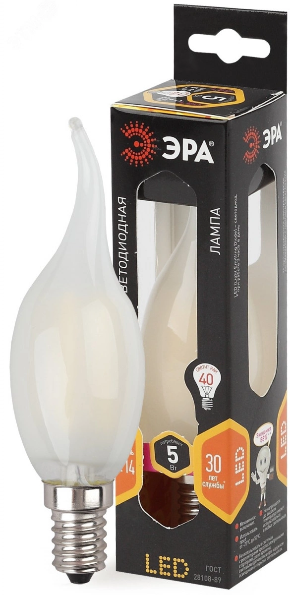 Лампа светодиодная филаментная F-LED BXS-5W-827-E14 frost (филамент, свеча на ветру мат., 5Вт, тепл, E14 (10/100/2800)