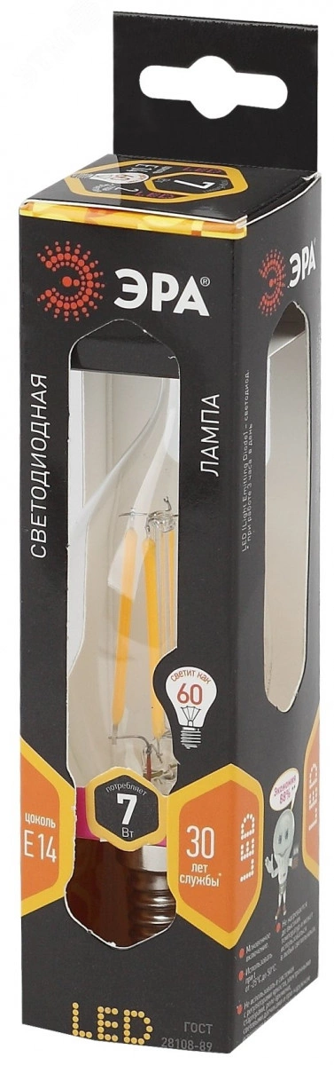 Лампа светодиодная филаментная F-LED BXS-7W-827-E14 (филамент, свеча на ветру, 7Вт, тепл, E14 (10/100/2800) ЭРА (Б0027944)
