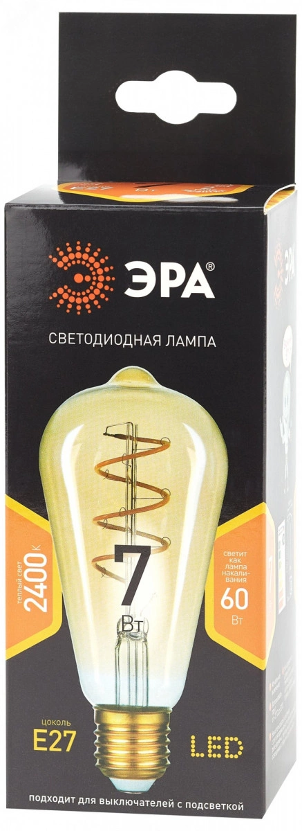 Лампа светодиодная филаментная F-LED ST64-7W-824-E27 spiral gold (филамент, спир зол, 7Вт, тепл, E27) (20/960) ЭРА