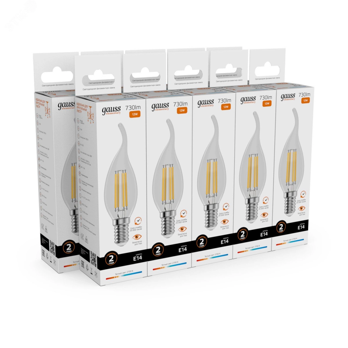 Лампа светодиодная филаментная LED 12 Вт 730 лм 2700К AC190-240В E14 свеча теплая Elementary Gauss