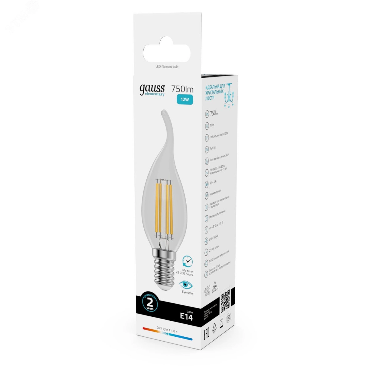 Лампа светодиодная филаментная LED 12 Вт 750 лм 4100К AC190-240В E14 свеча нейтральный Elementary