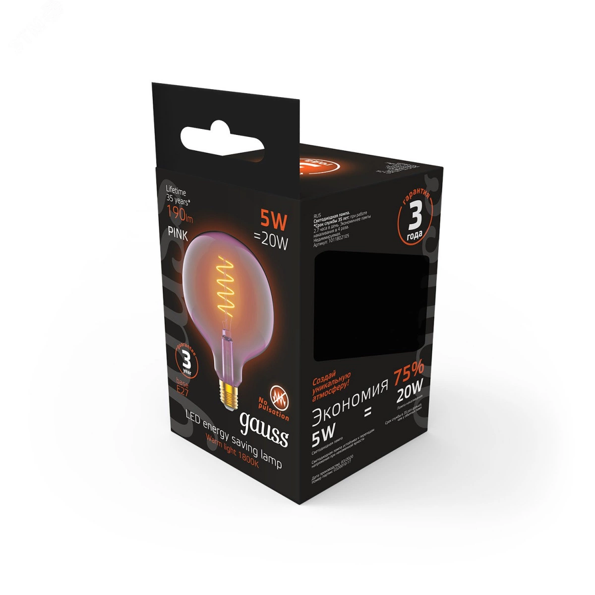 Лампа светодиодная филаментная LED 5 Вт 190 лм 1800К AC185-265В E27 шар G125 теплая розовая колба Black Filament Gauss
