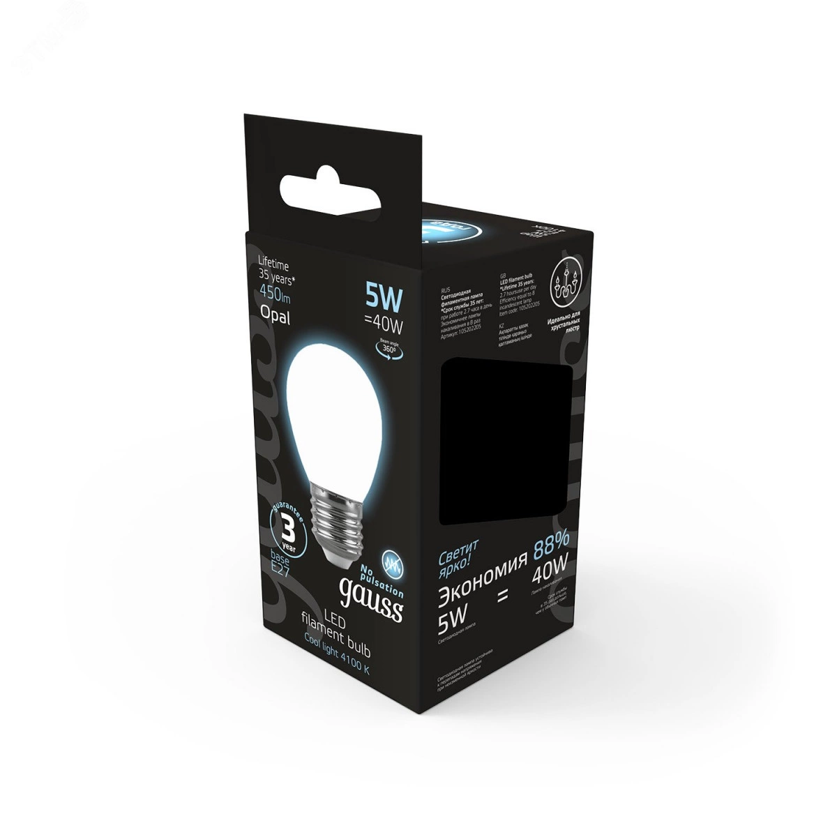 Лампа светодиодная филаментная LED 5 Вт 450 лм 4100К AC150-265В E27 шар P45 нейтральный матовая колба Black Filament Gauss