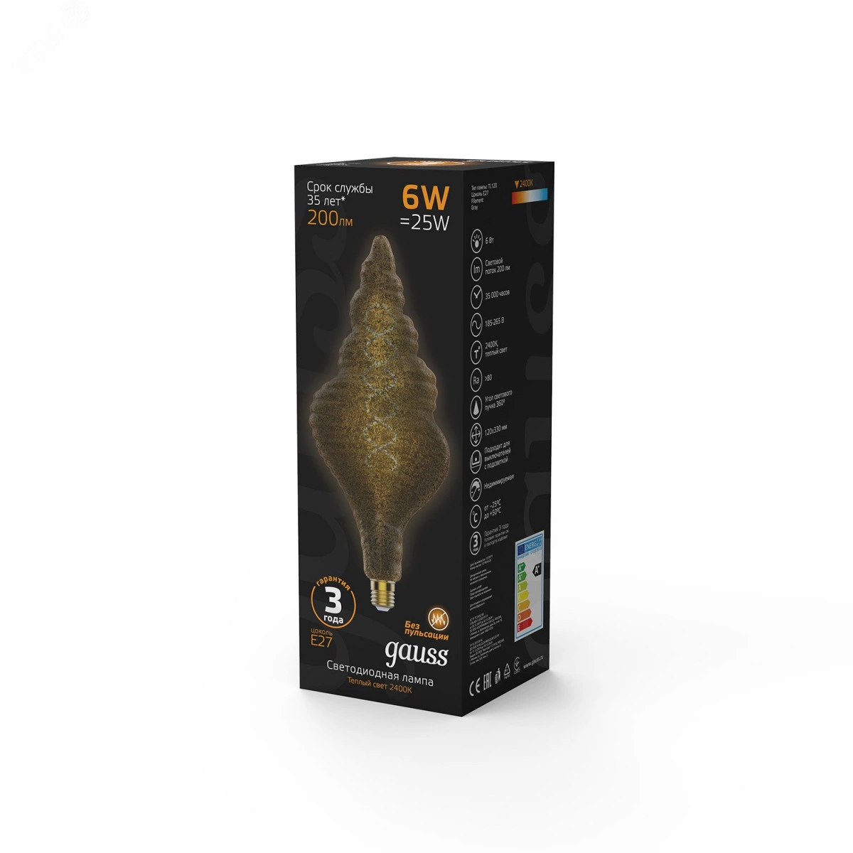 Лампа светодиодная филаментная LED 6 Вт 200 лм 2400К AC185-265В E27 TL120 теплая серая колба Black Filament Gauss