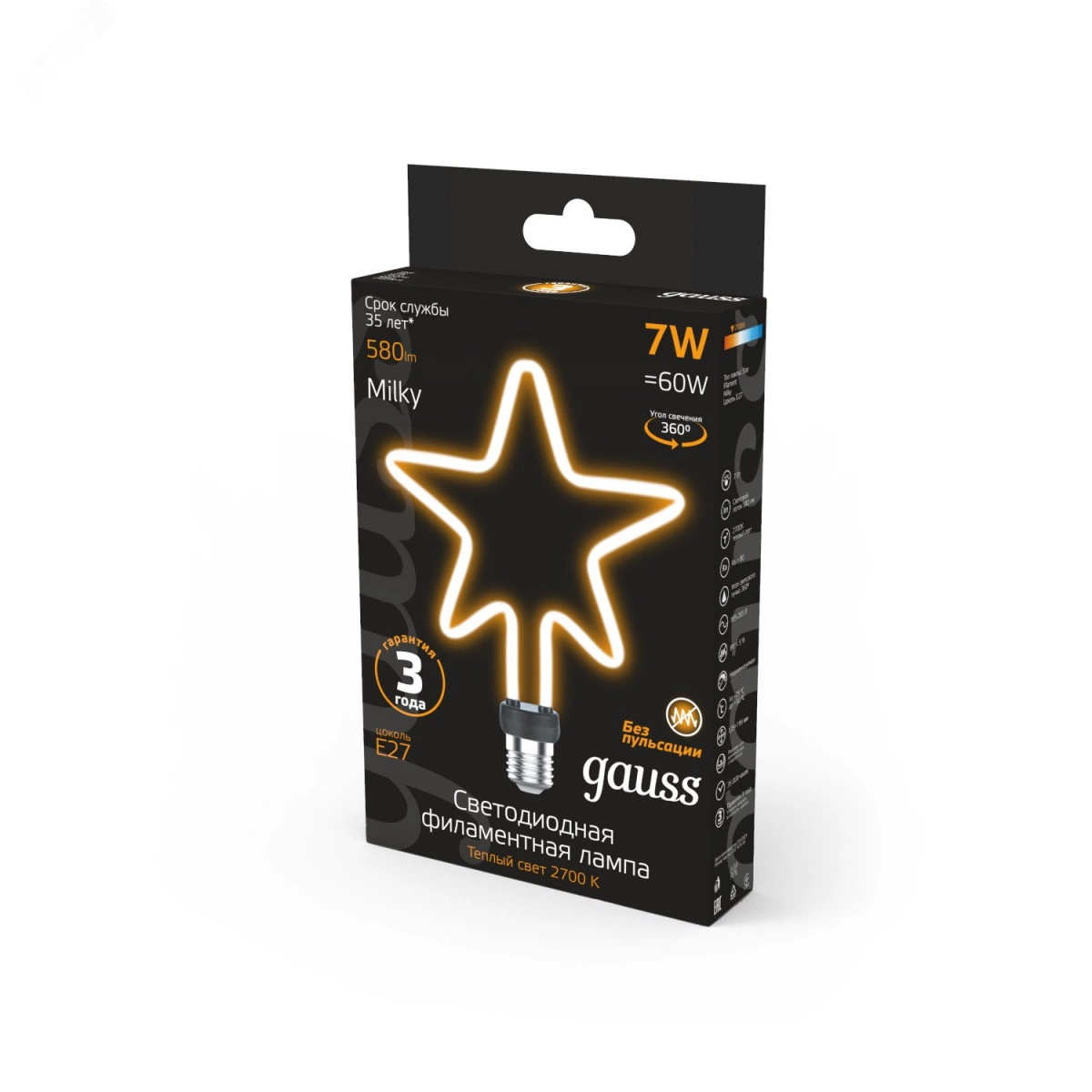 Лампа светодиодная филаментная LED 7 Вт 580 лм 2700К AC185-265В E27 Star теплая матовая колба Black Filament Gauss