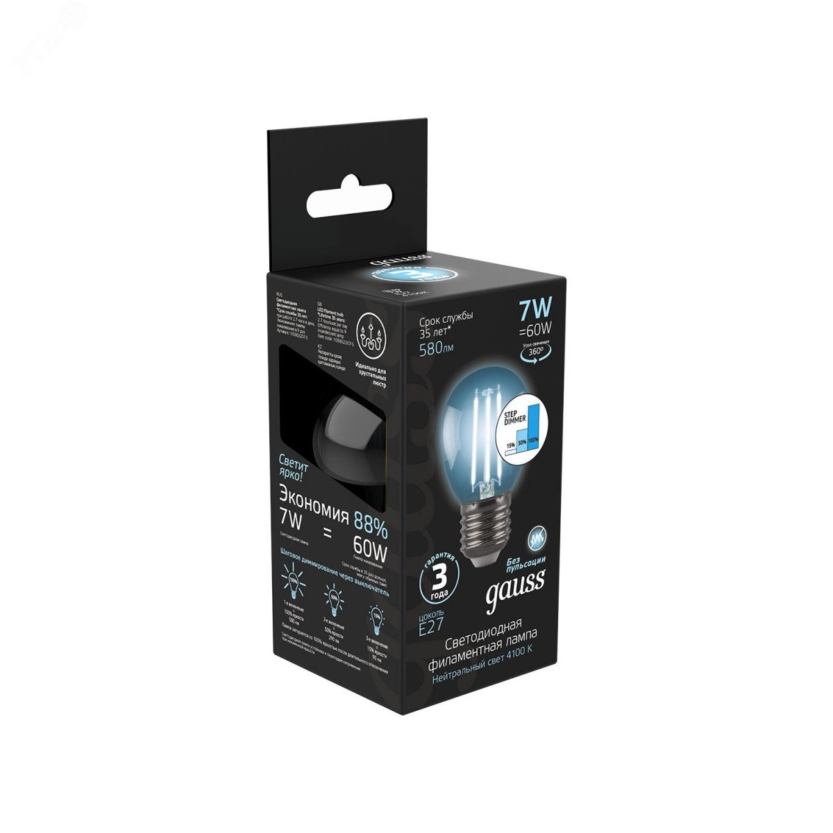 Лампа светодиодная филаментная LED 7 Вт 580 лм 4100К AC185-265В E27 шар P45 нейтральный шаговое диммирование выключателем Black Filament Gauss