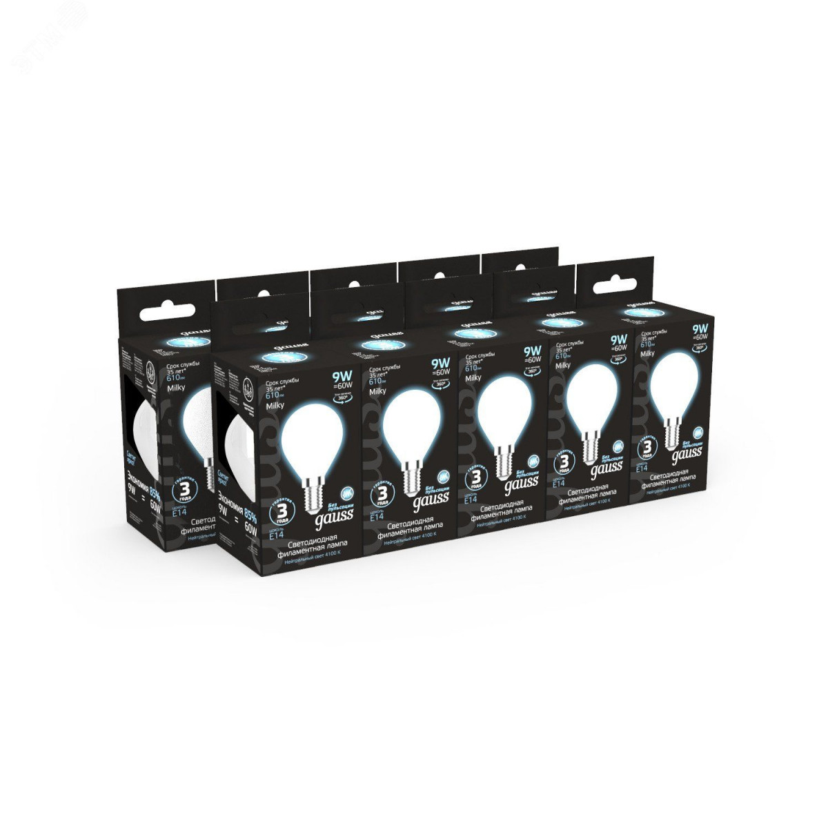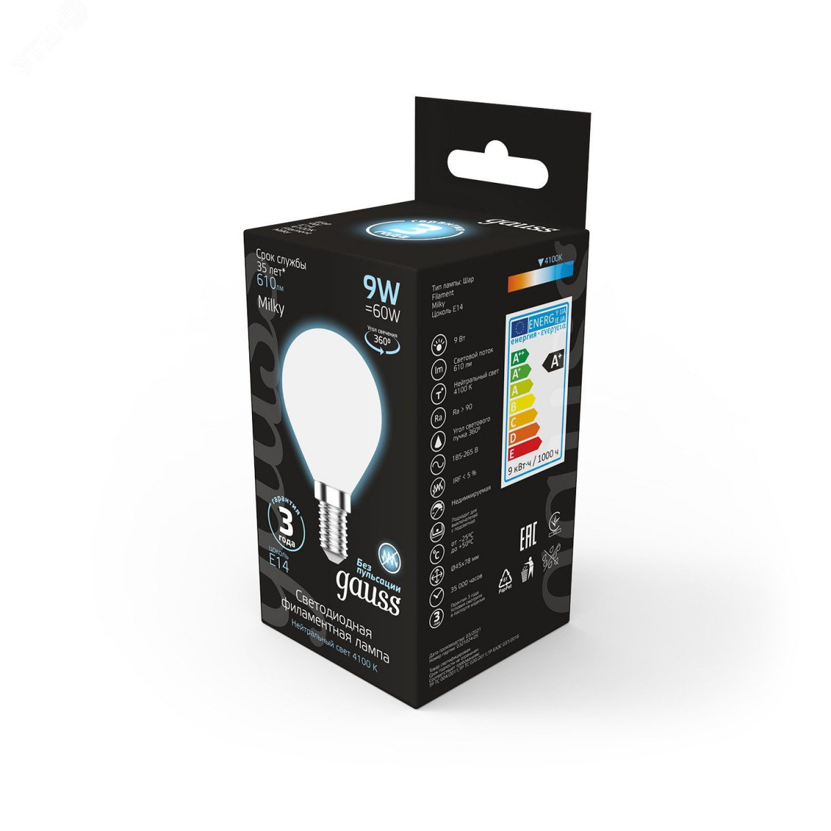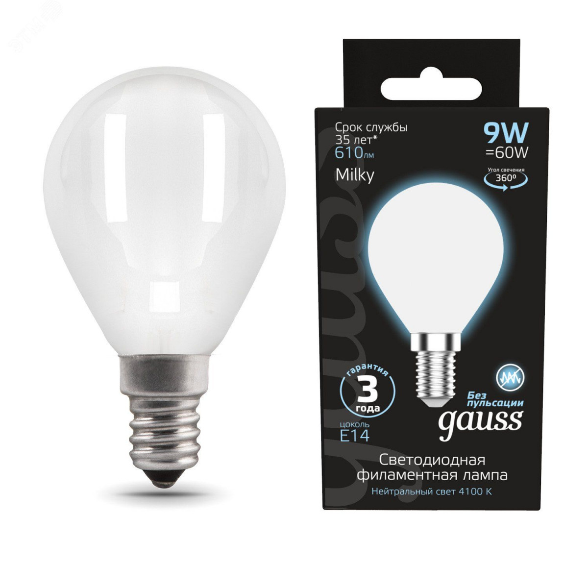 Лампа светодиодная филаментная LED 9 Вт 610 лм 4100К шар P45 нейтральный E14 AC 220В матовая колба Black Filament Gauss