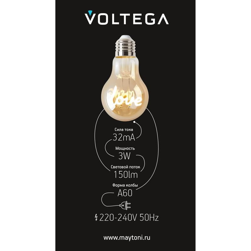 Полное описание: Лампа светодиодная филаментная Loft 271 A60 3Вт 2400К E27 Voltega 8580