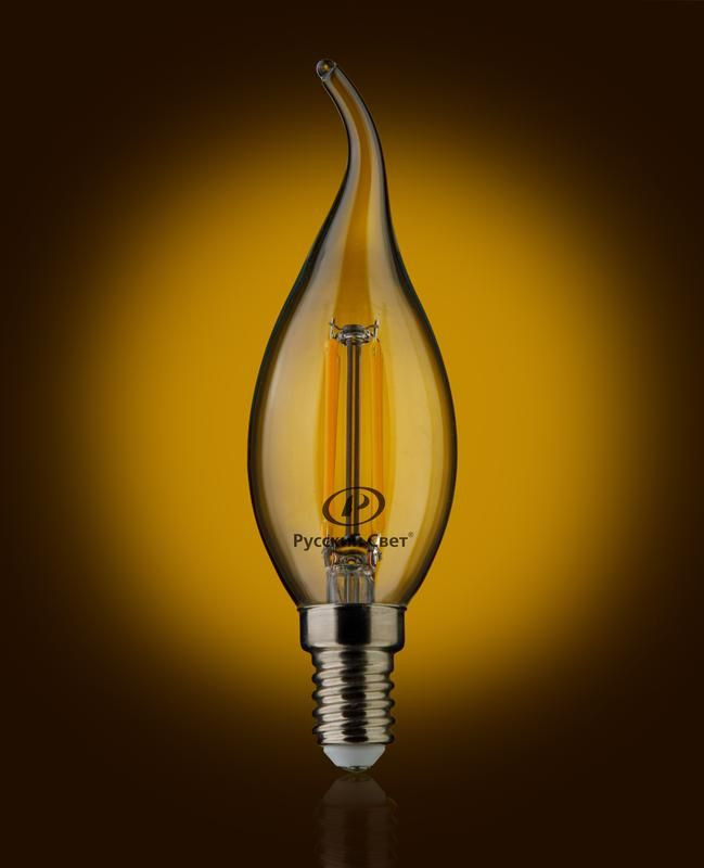 Лампа светодиодная филаментная RS F BXS E14 7W 220-240V 2700К 7Вт 810лм Ra 90 свеча на ветру Русский Свет 15011045087