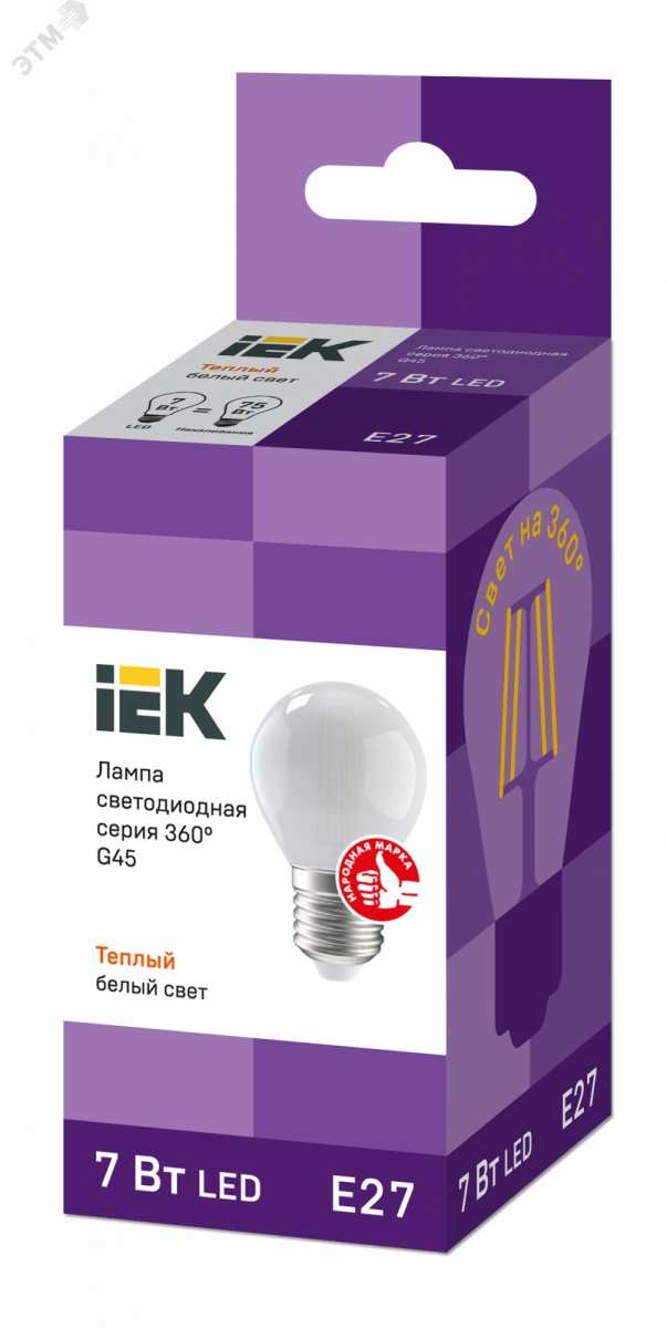 Лампа LED G45 шар матов. 7Вт 230В 3000К E27 серия 360° IEK с нитевидным светодиодом (филаментная нить) является одним из самых эффективных источников света. Главное отличие от обычных светодиодных ламп – угол рассеивания света до 360° (дополнительный комфорт для глаз). Лампа применяется в осветительных приборах бытового назначения. Представлены в 3 вариантах - с прозрачной, золоченой и матовой колбами. Соответствуют требованиям Технических регламентов Таможенного союза ТР ТС 004/2011, ТР ТС 020/2011, МЭК 62560 и постановления Правительства РФ от 10.11.2017 № 1356.