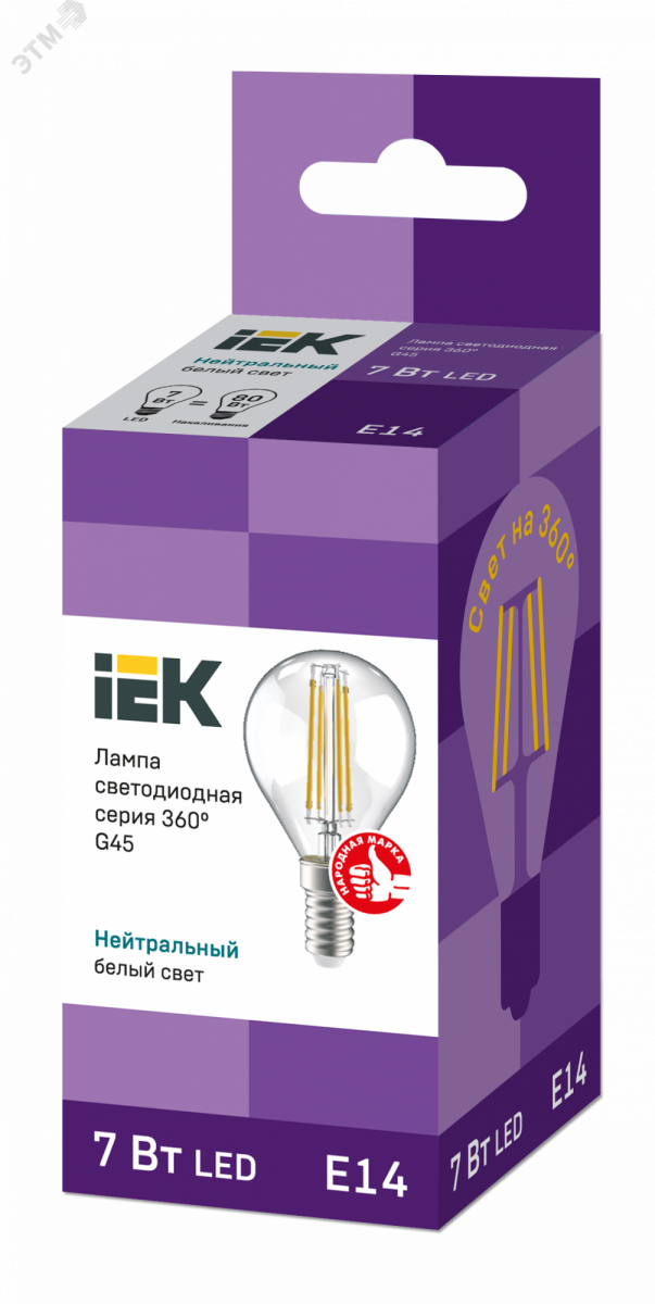 Лампа LED G45 шар прозр. 7Вт 230В 4000К E14 серия 360° IEK с нитевидным светодиодом (филаментная нить) является одним из самых эффективных источников света. Главное отличие от обычных светодиодных ламп – угол рассеивания света до 360° (дополнительный комфорт для глаз). Лампа применяется в осветительных приборах бытового назначения. Представлены в 3 вариантах - с прозрачной, золоченой и матовой колбами. Соответствуют требованиям Технических регламентов Таможенного союза ТР ТС 004/2011, ТР ТС 020/2011, МЭК 62560 и постановления Правительства РФ от 10.11.2017 № 1356.