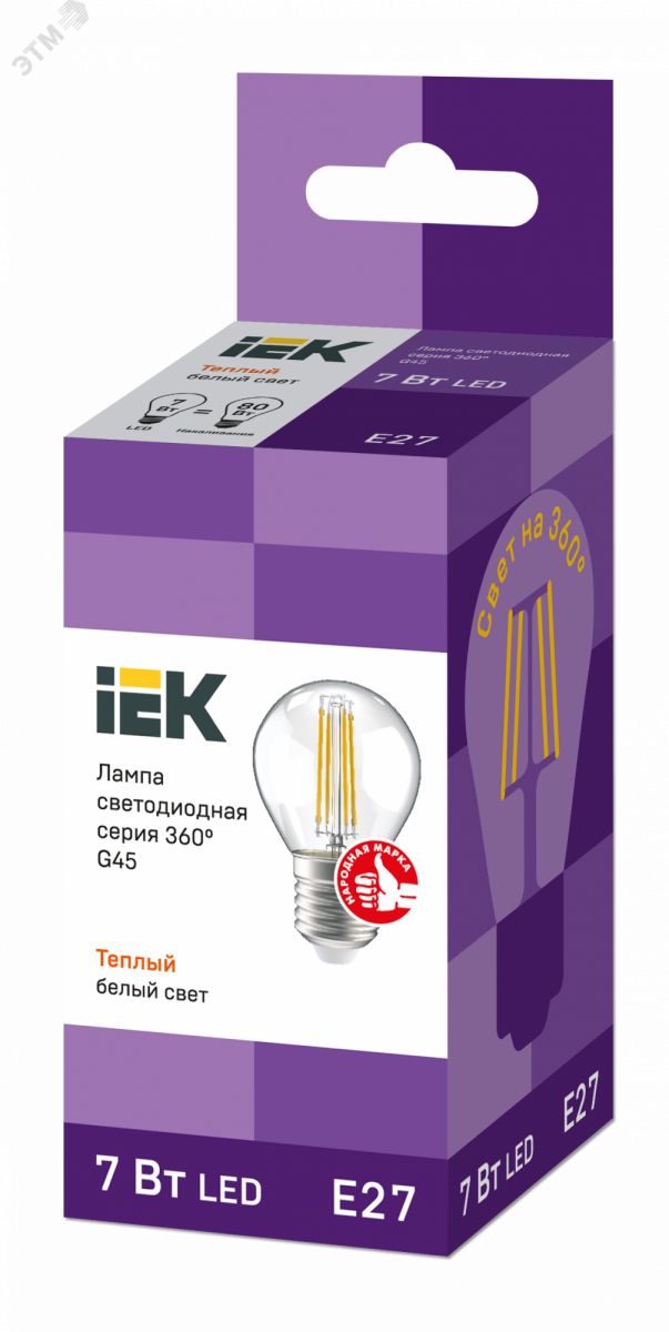 Лампа LED G45 шар прозр. 7Вт 230В 3000К E27 серия 360° IEK с нитевидным светодиодом (филаментная нить) является одним из самых эффективных источников света. Главное отличие от обычных светодиодных ламп – угол рассеивания света до 360° (дополнительный комфорт для глаз). Лампа применяется в осветительных приборах бытового назначения. Представлены в 3 вариантах - с прозрачной, золоченой и матовой колбами. Соответствуют требованиям Технических регламентов Таможенного союза ТР ТС 004/2011, ТР ТС 020/2011, МЭК 62560 и постановления Правительства РФ от 10.11.2017 № 1356.