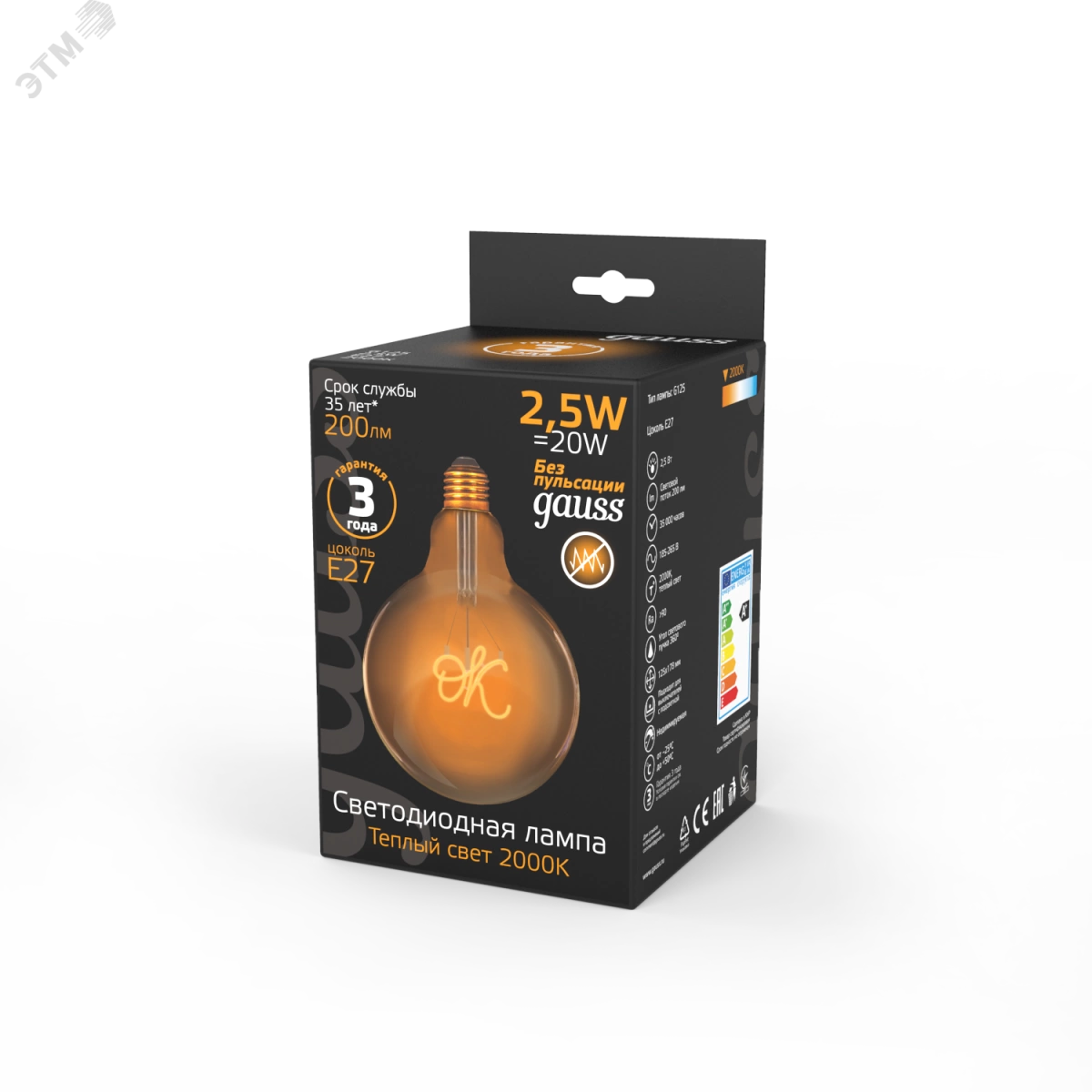 Лампа светодиодная golden 2.5 Вт 200 Лм 2000К OК Е27 G125 Filament Gauss