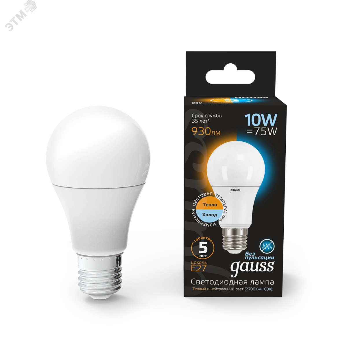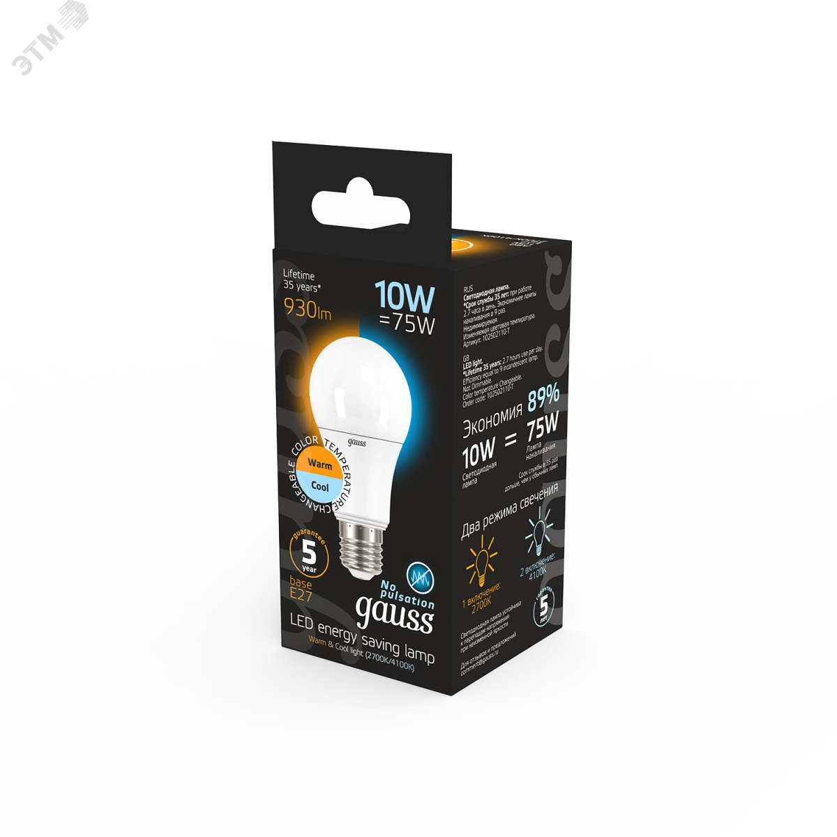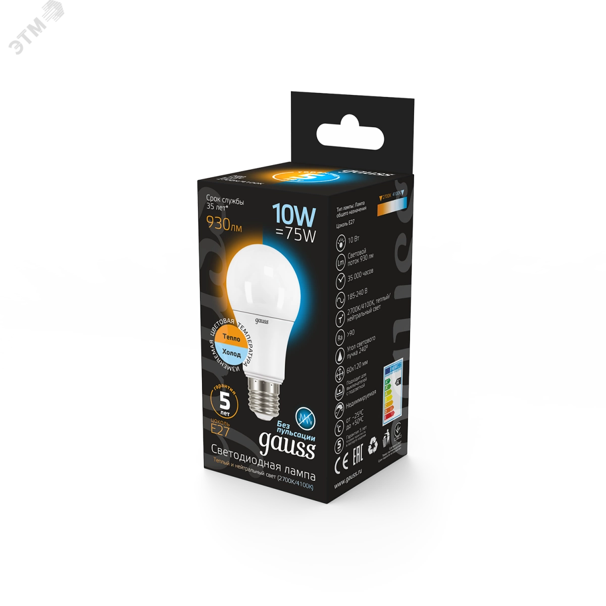Лампа светодиодная LED 10 Вт 930 Лм 3000К-4100К E27 A60 изм.цвет.темп. Black Gauss
