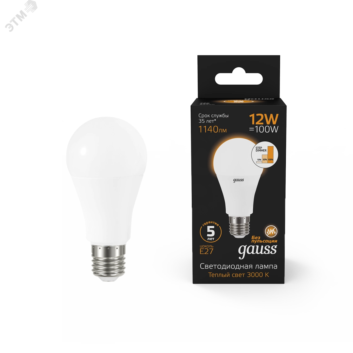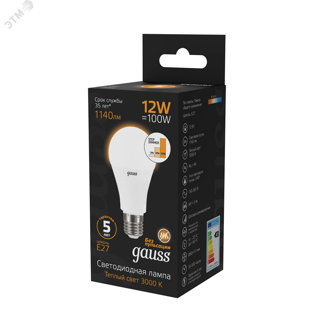 Премиальная серия ламп Gauss Black — надежные источники освещения высокого качества. Благодаря использованию качественных комплектующих и современных технологий лампы этой серии имеют один из самых высоких показателей энергоэффективности и долговечности. Уровень пульсации светового потока в светодиодных лампах Gauss ниже 5%, поэтому они создают комфортный и безопасный свет. Покупатель ламп серии black может быть уверен, что получает безопасный для глаз, яркий и комфортный свет. Передовые технологические решения обеспечивают стабильный световой поток даже при перепадах напряжения. Длительный срок гарантии — решение, основанное на уверенности в качестве продукции и ее долговечности.