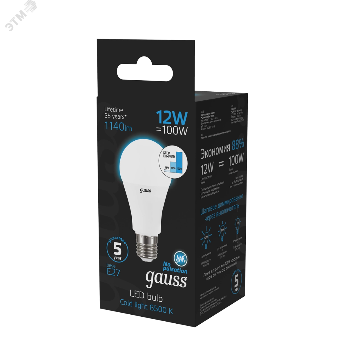 Премиальная серия ламп Gauss Black — надежные источники освещения высокого качества. Благодаря использованию качественных комплектующих и современных технологий лампы этой серии имеют один из самых высоких показателей энергоэффективности и долговечности. Уровень пульсации светового потока в светодиодных лампах Gauss ниже 5%, поэтому они создают комфортный и безопасный свет. Покупатель ламп серии black может быть уверен, что получает безопасный для глаз, яркий и комфортный свет. Передовые технологические решения обеспечивают стабильный световой поток даже при перепадах напряжения. Длительный срок гарантии — решение, основанное на уверенности в качестве продукции и ее долговечности.