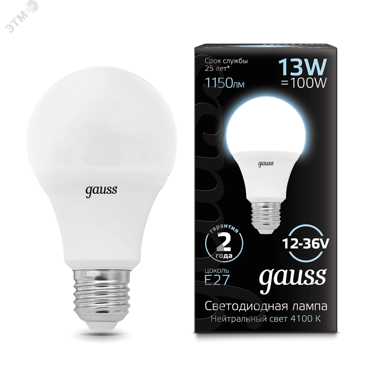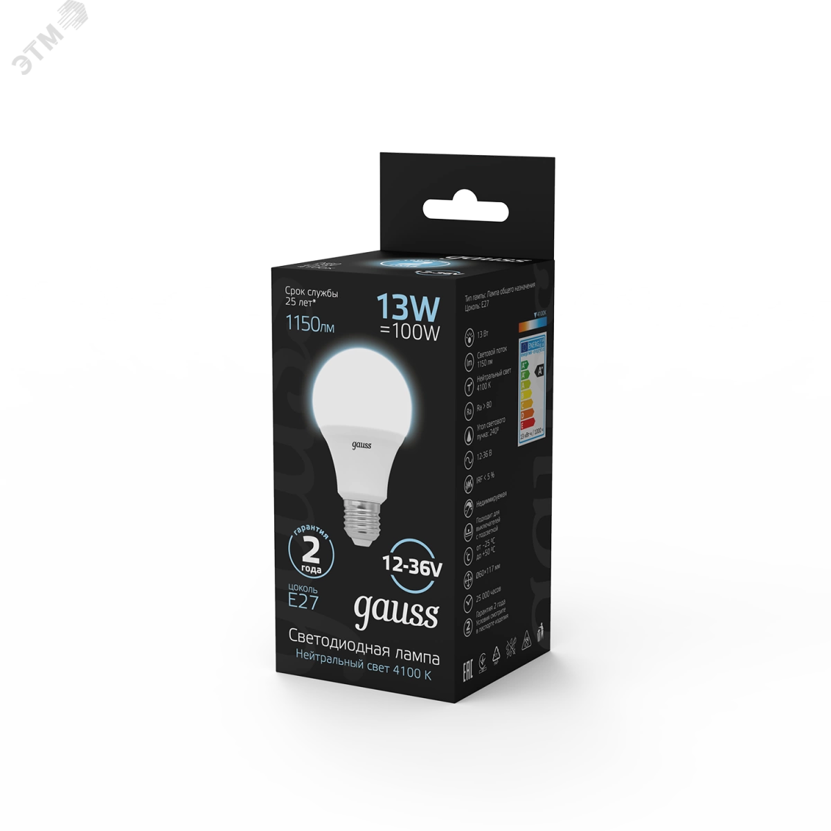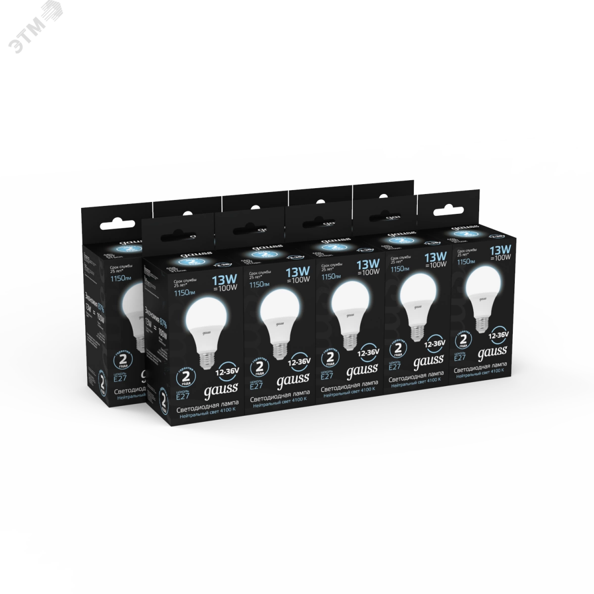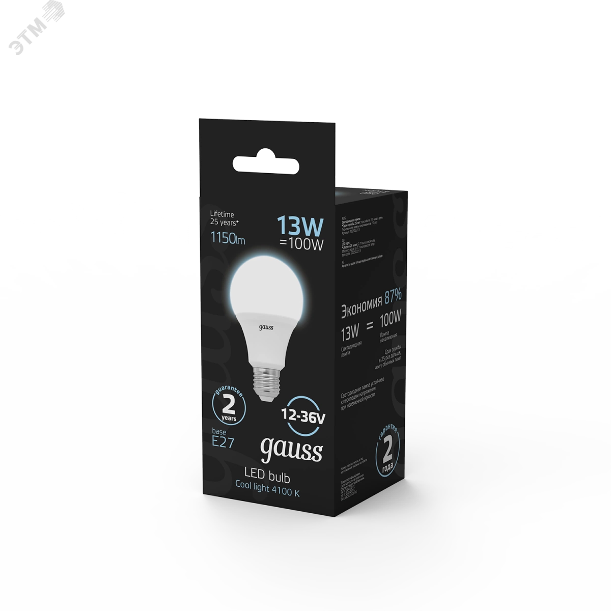 Лампа светодиодная LED 13 Вт 1150 Лм 4100K белая E27 A60 AC/DC 12-36 В Black Gauss