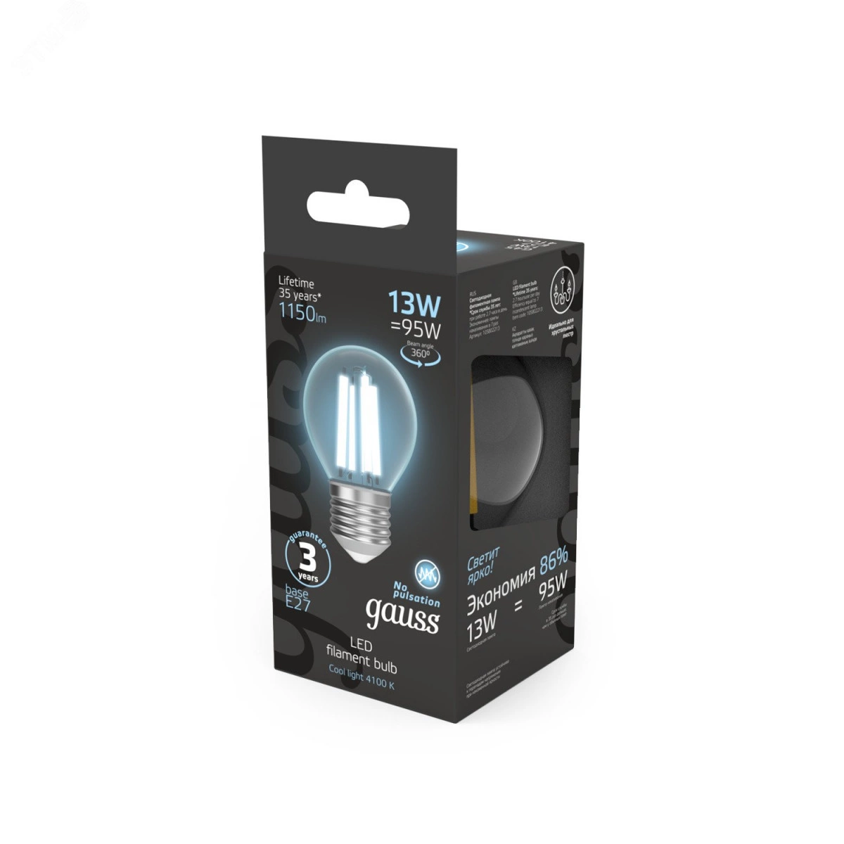 Светодиодные филаментные лампы GAUSS - это новейшие технологии в светотехнике. Лампы имеют привычный вид классических ламп накаливания, освещают пространство на 360 градусов и дают больше света по сравнению с обычными светодиодными лампами за счет прозрачной колбы. Идеально подходят для хрустальных люстр и открытых светильников, а также для реализации дизайнерских решений, где важен вид классических ламп накаливания.
