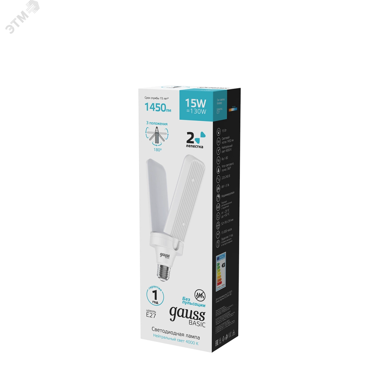 Лампа светодиодная LED 15 Вт 1450 Лм 4000К белая E27 Клевер-2 Basic Gauss